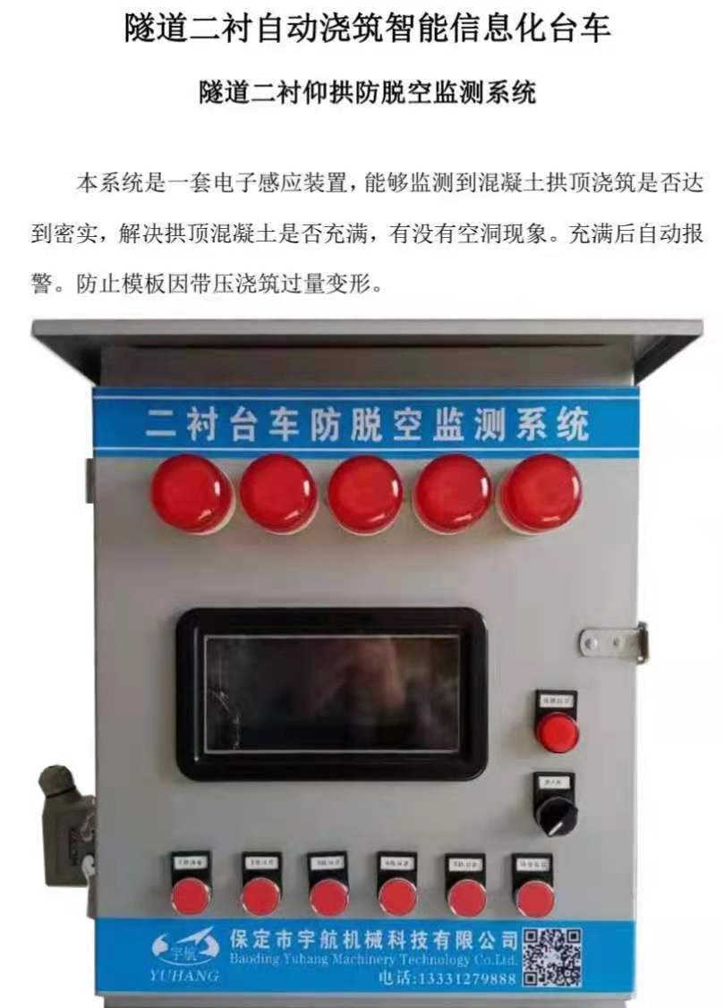智能信息化臺(tái)車,它加裝了攝像、防脫空監(jiān)測(cè)系統(tǒng)、通過插入式高頻振搗系統(tǒng)對(duì)振搗時(shí)間、頻次、插入深度等參數(shù)自動(dòng)控制、激光掃描系統(tǒng)、流量泵計(jì)量、入模溫度、壓力傳感器實(shí)時(shí)監(jiān)測(cè)系統(tǒng),臺(tái)車自動(dòng)行走系統(tǒng)、激光定位系統(tǒng)、及臺(tái)車堵頭板專利產(chǎn)品的應(yīng)用,這臺(tái)智能信息化自動(dòng)澆筑臺(tái)車,加裝了“宇航e管家”,實(shí)現(xiàn)了自動(dòng)澆筑智能化信息化,實(shí)時(shí)監(jiān)控,實(shí)施儲(chǔ)存,克服了隧道二襯脫空、蜂窩麻面等質(zhì)量問題,減少人工 提高了工效 節(jié)約了成本。